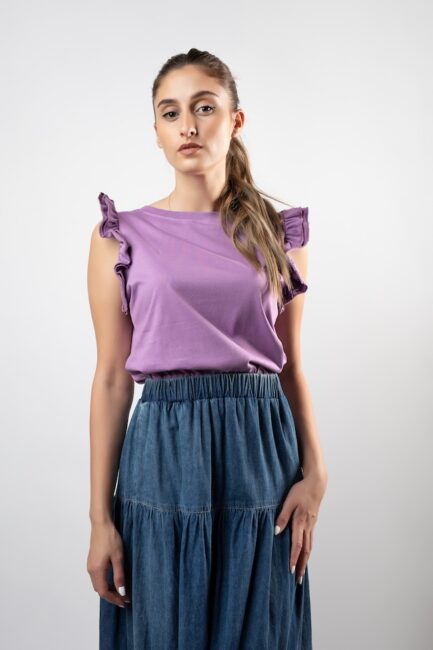 Sleeve Less Cotton T-Shirt With Raffle