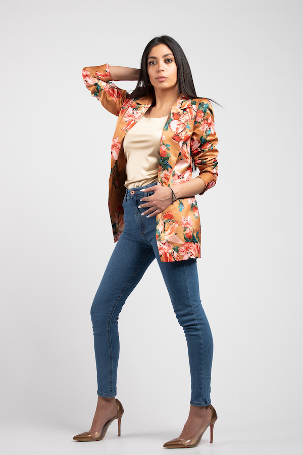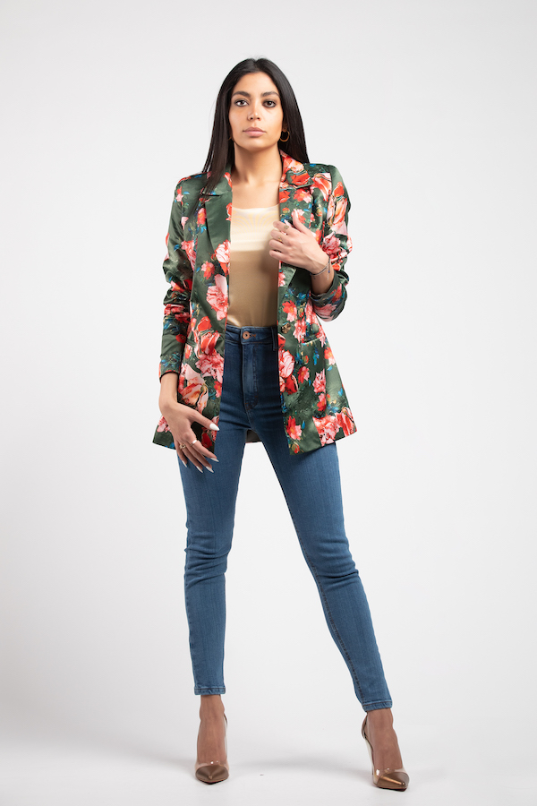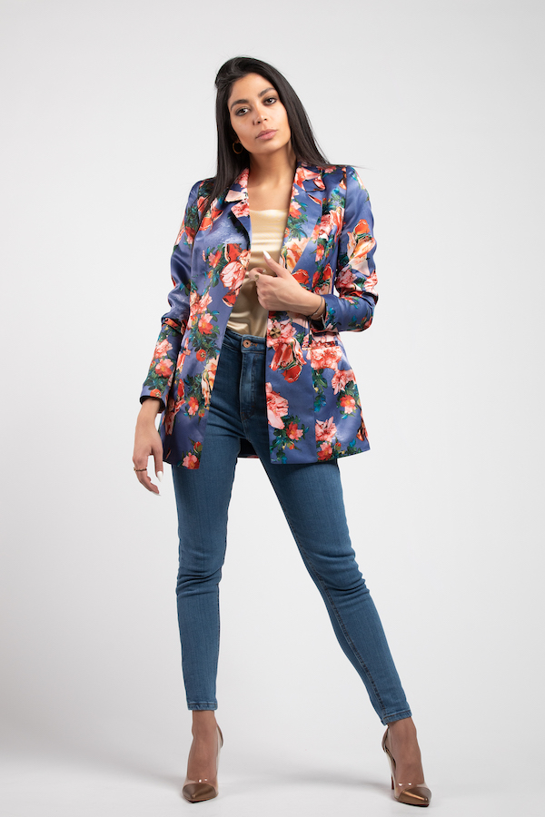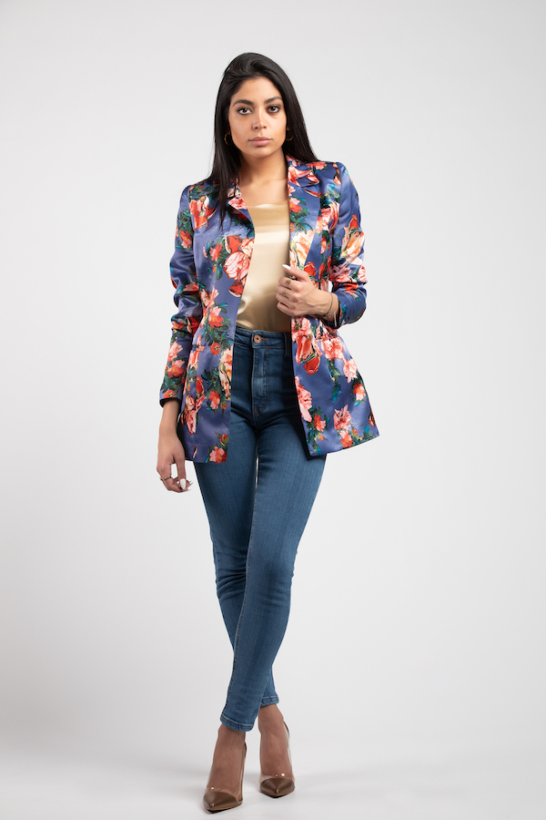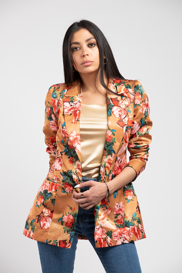 printed satin blazer
